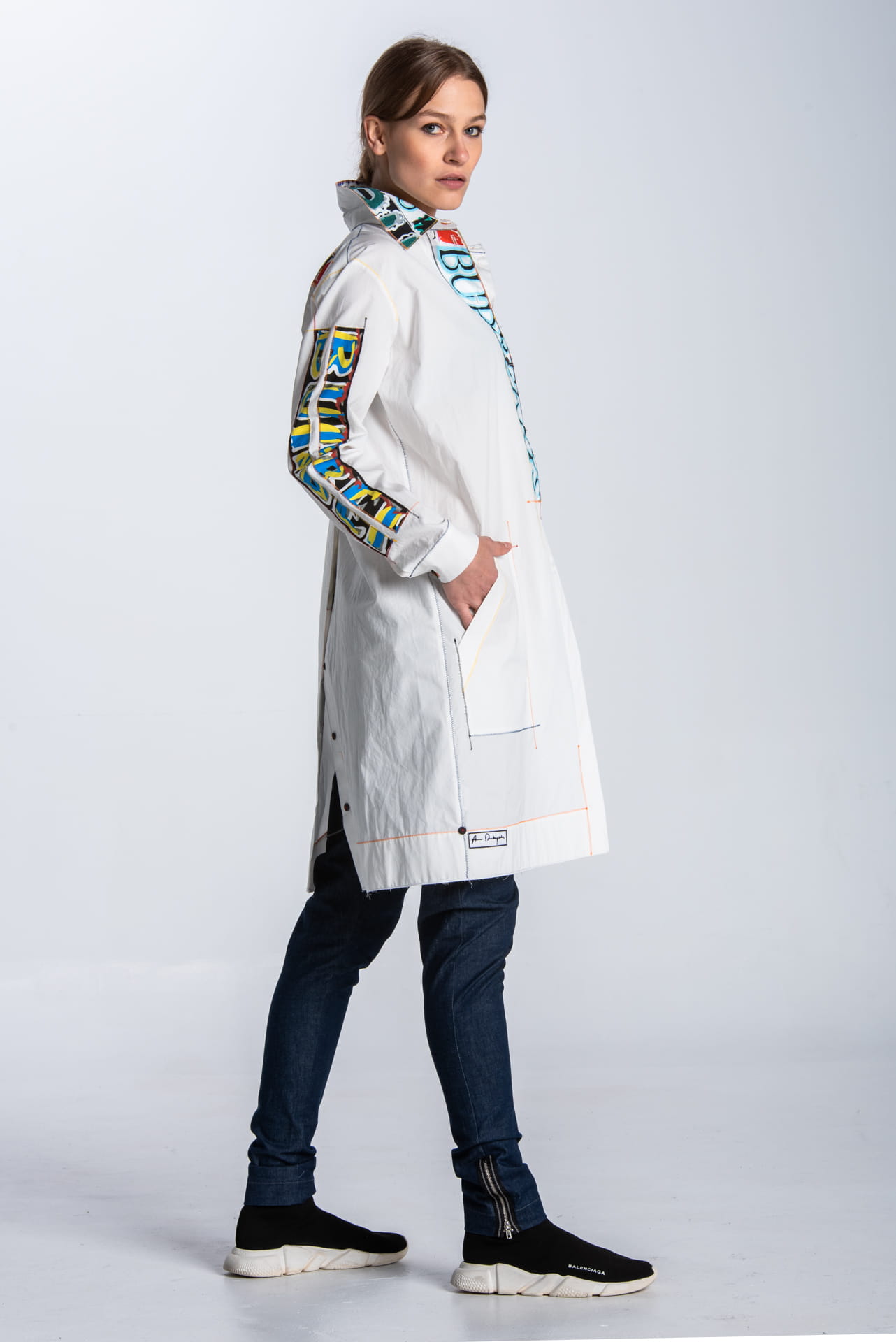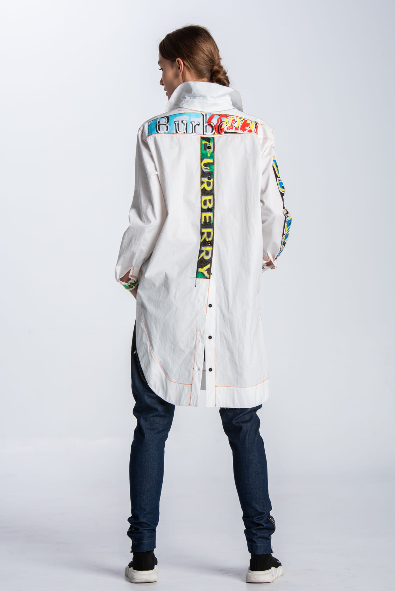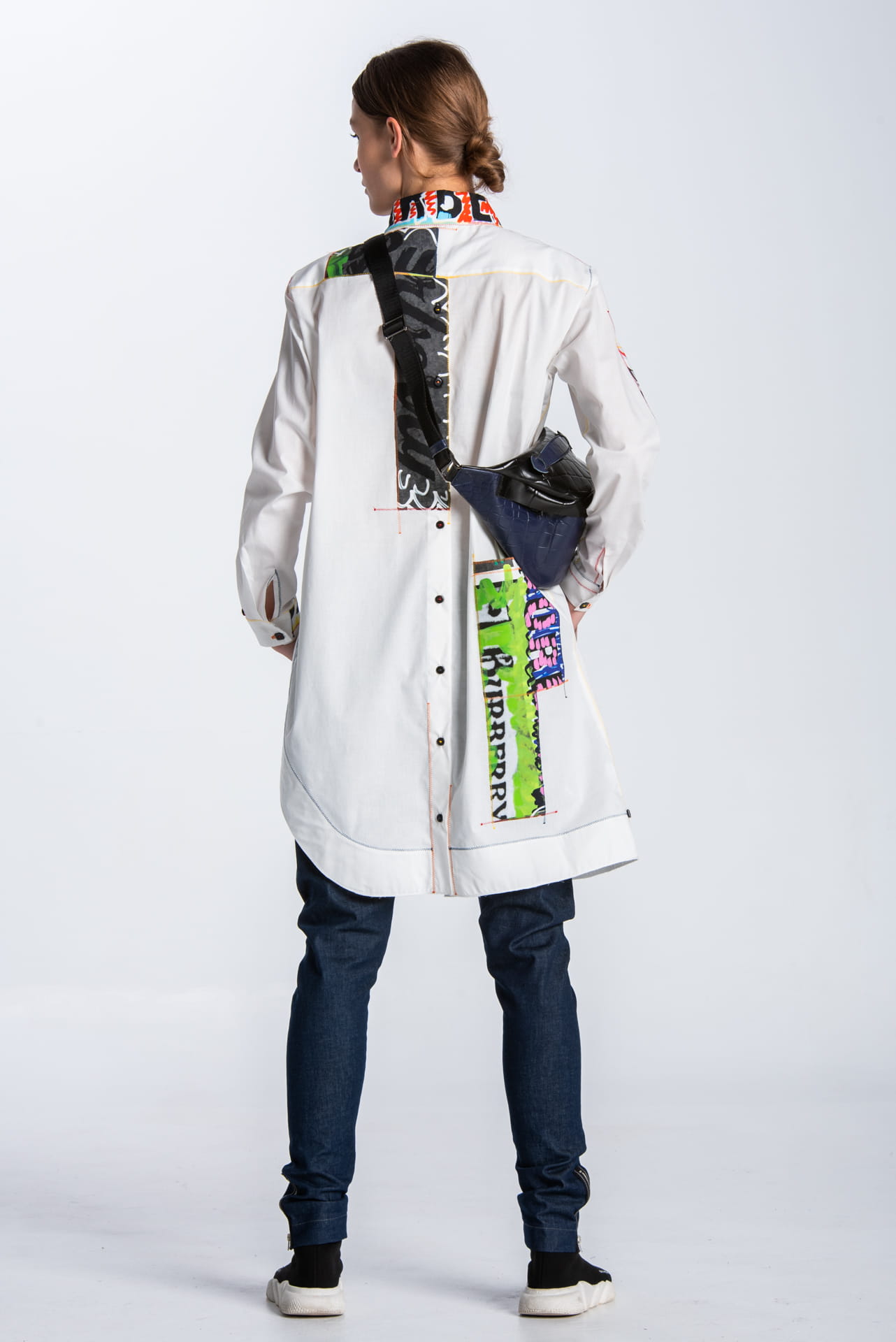 Long asymmetrical appliquéd shirt white