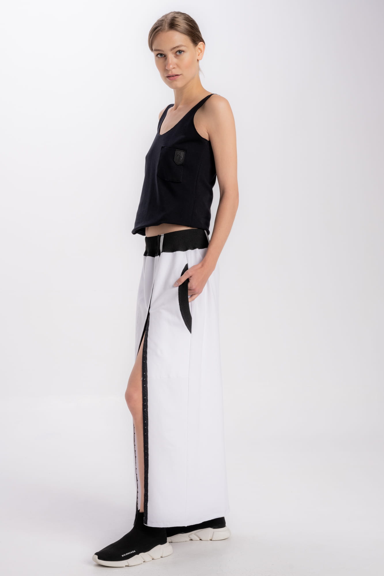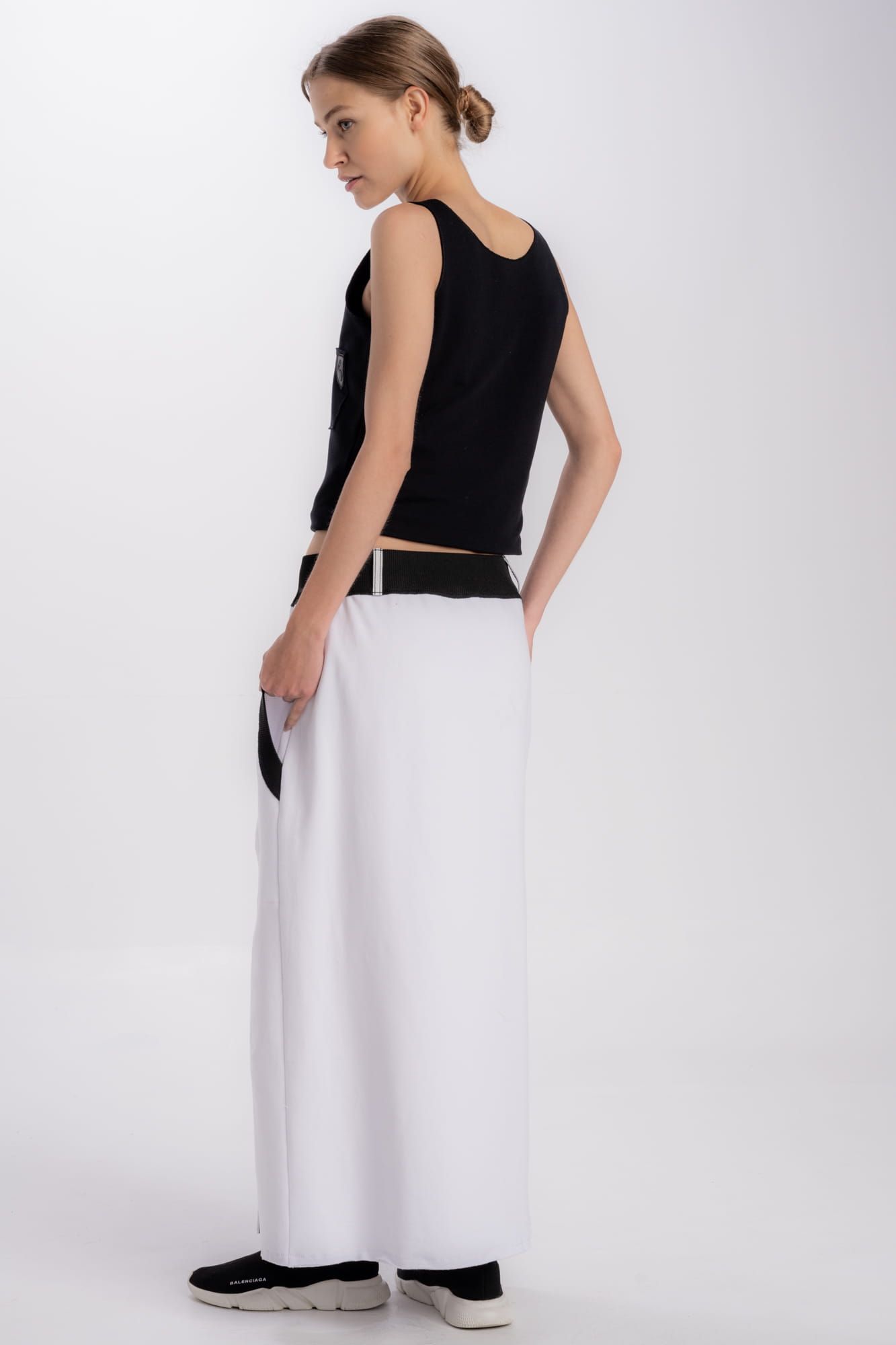 Long jersey skirt in white