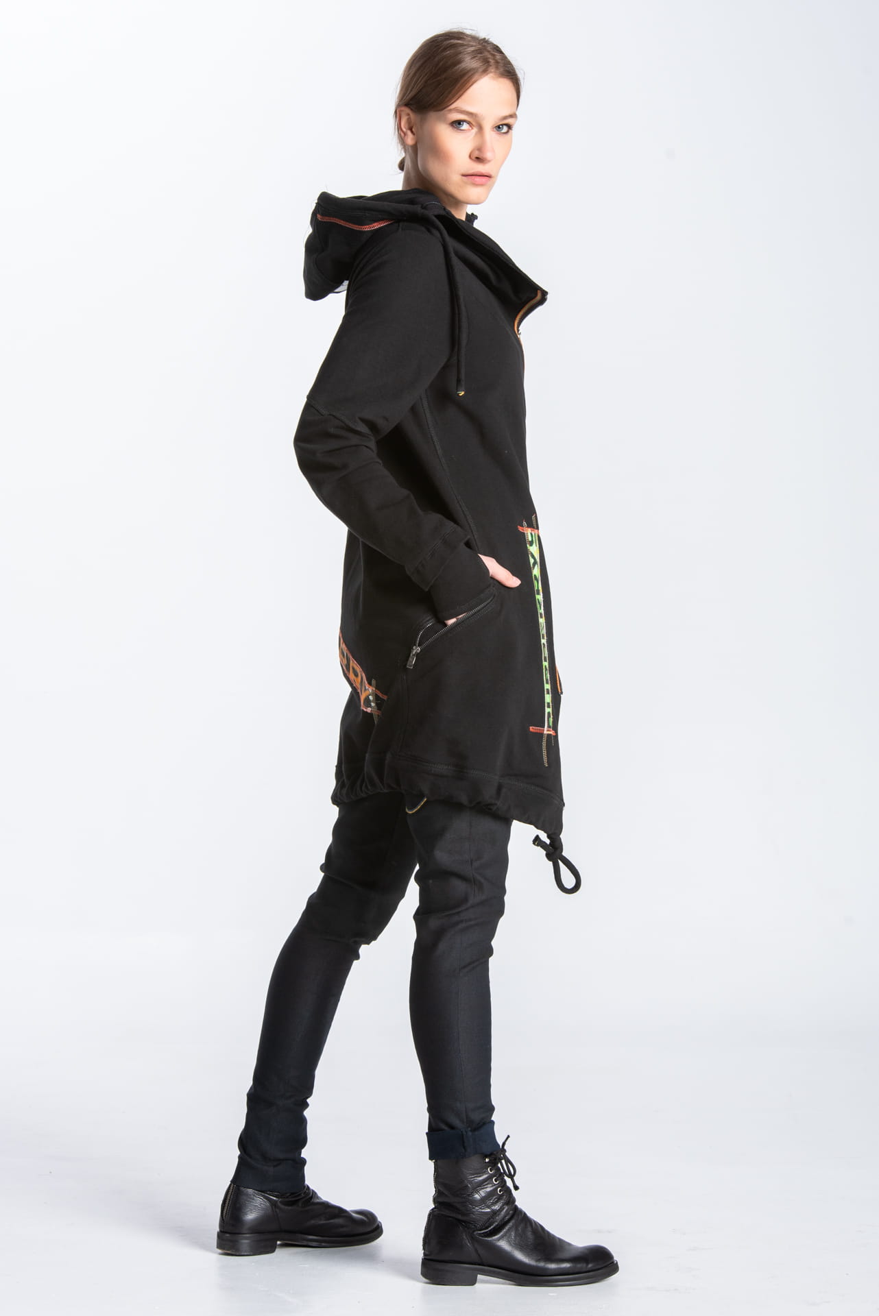 - Comfy, long cotton sweatshirt that can also be used as a sporty casual coat