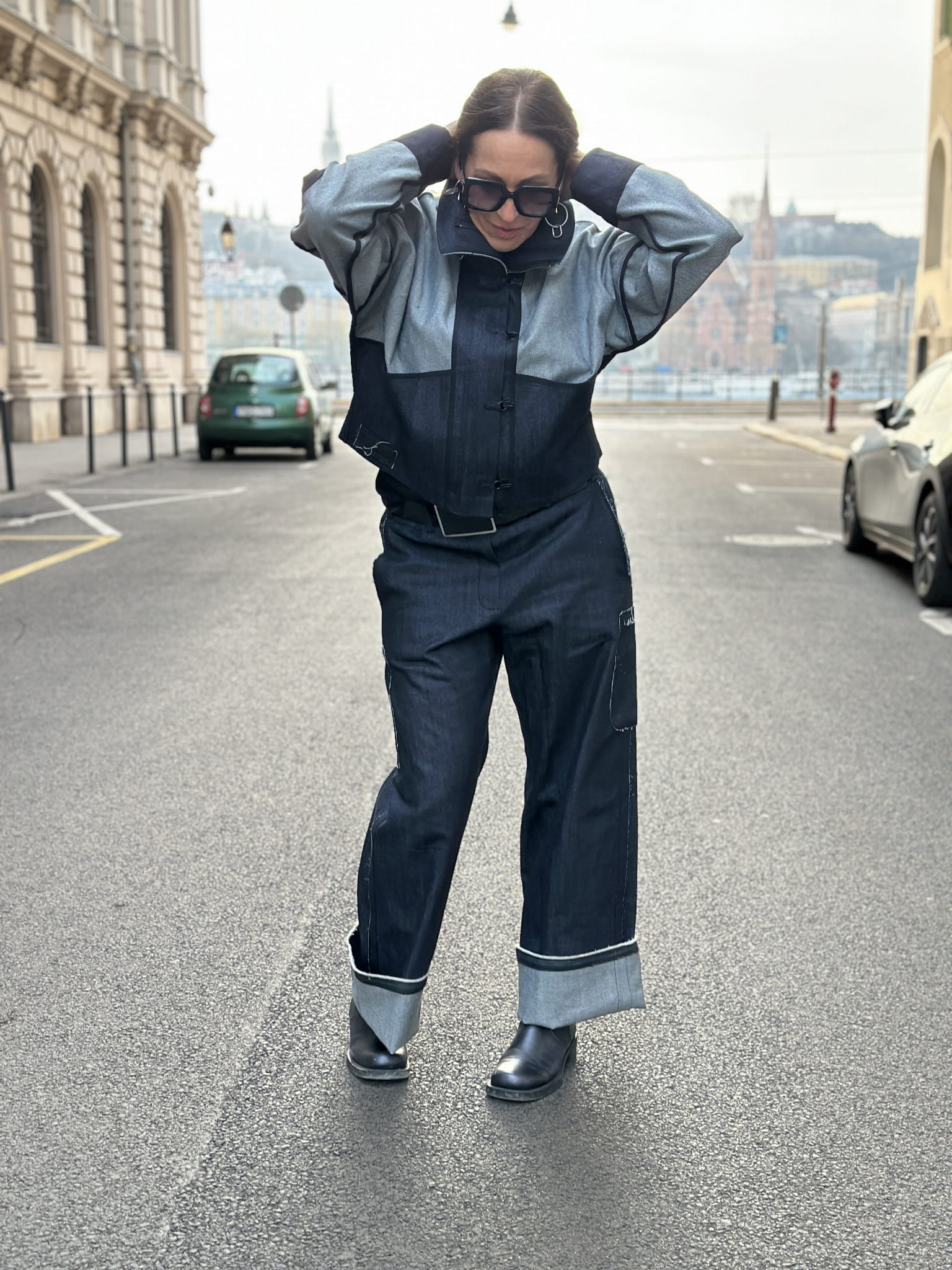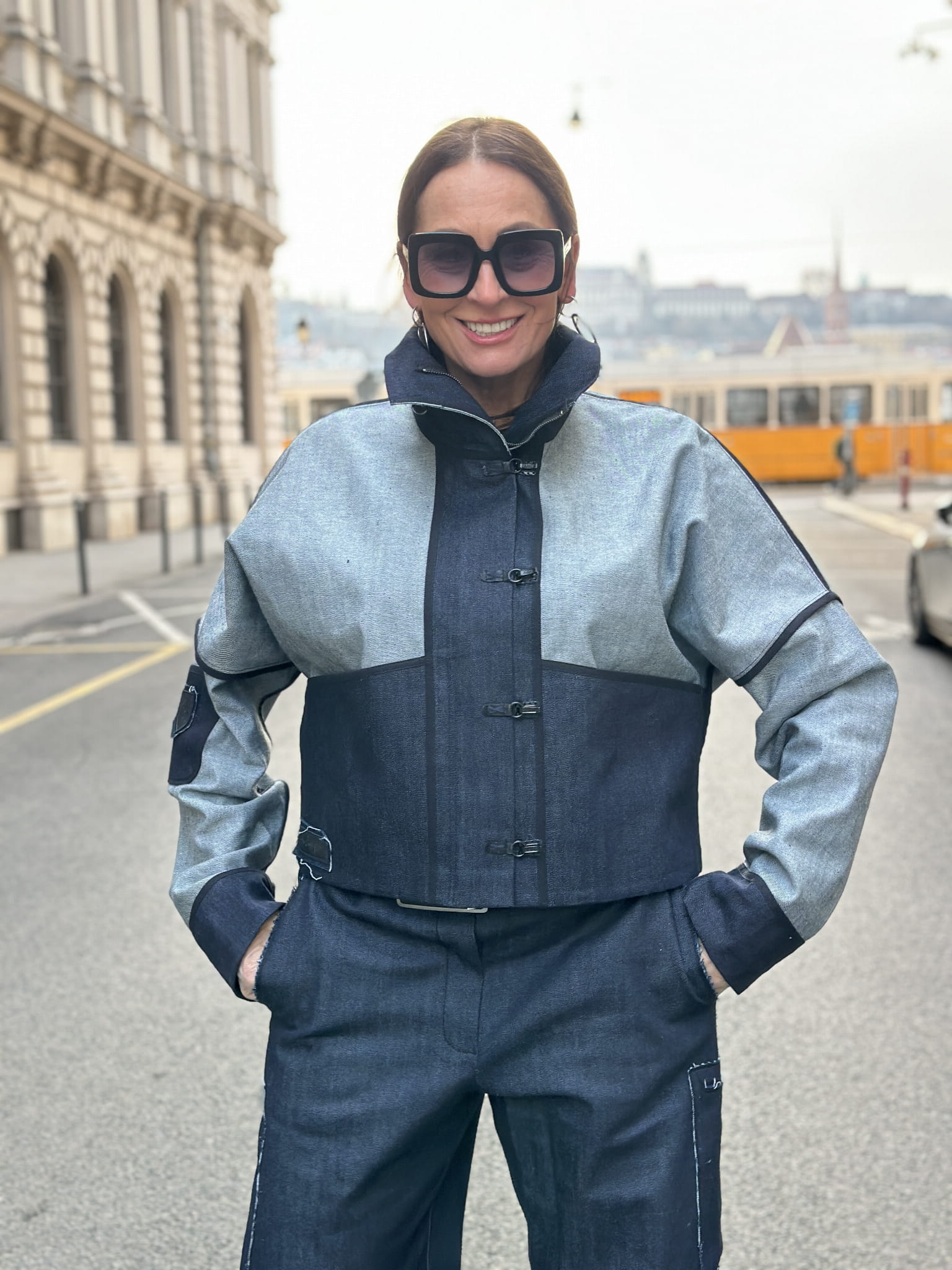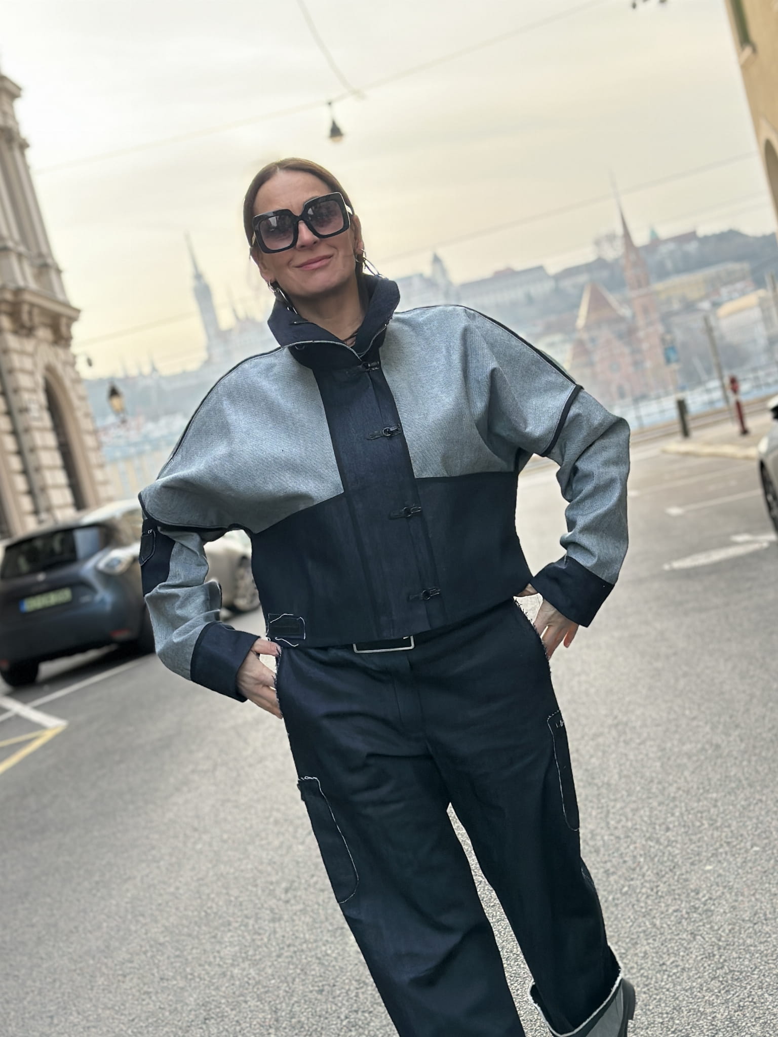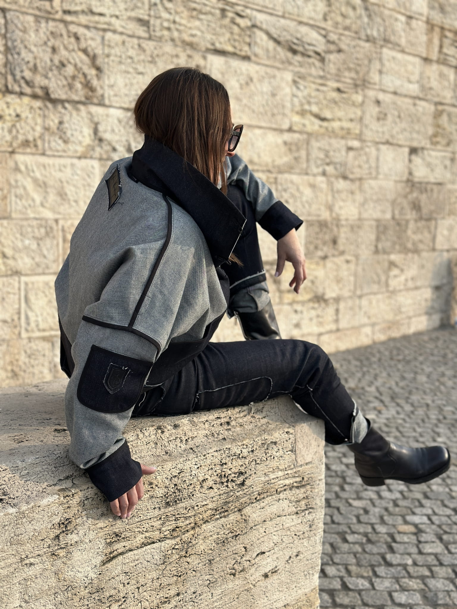 Jeansowa kurtka-pudełko dwustronna - ciemny granat wersja 1