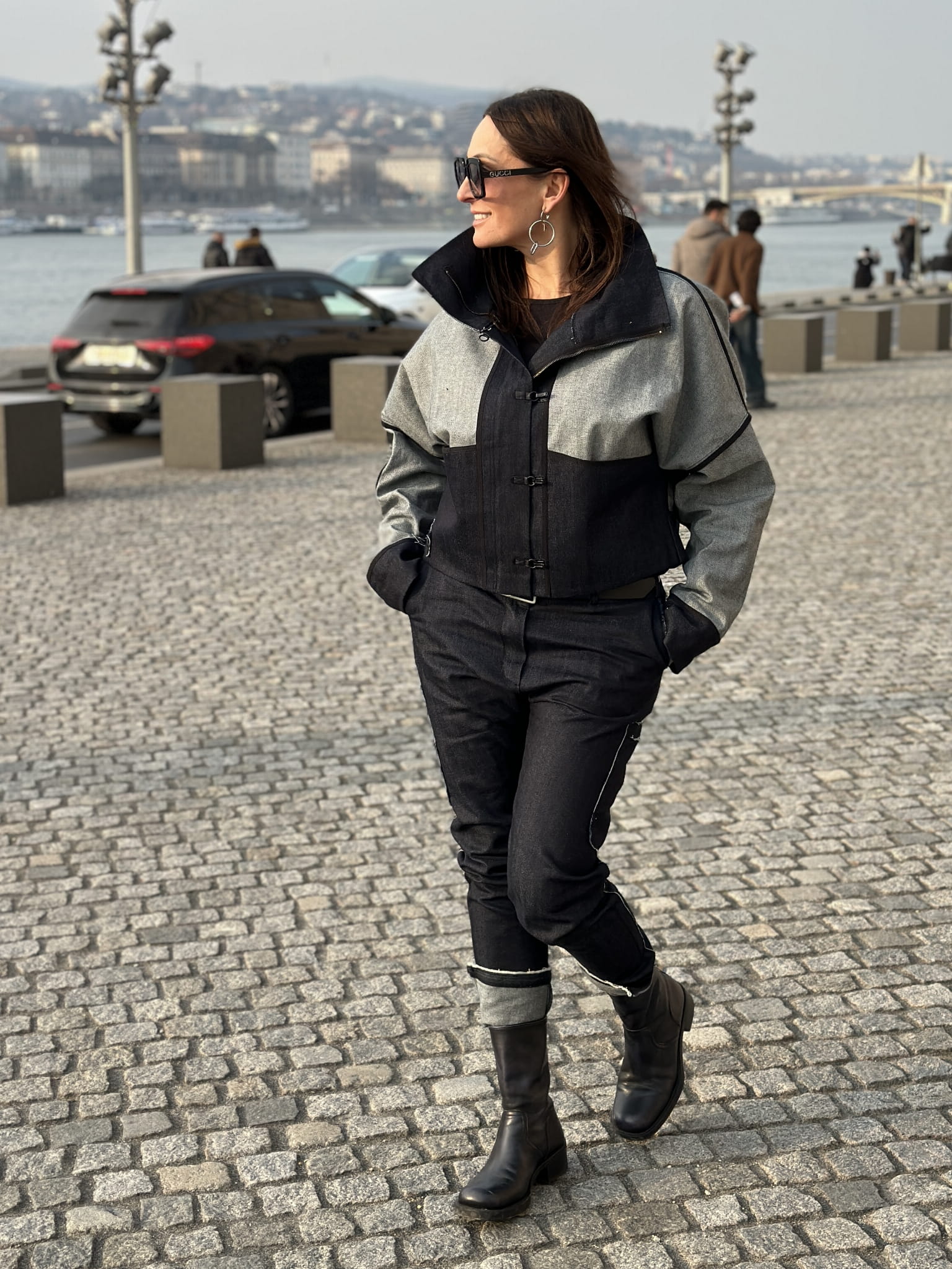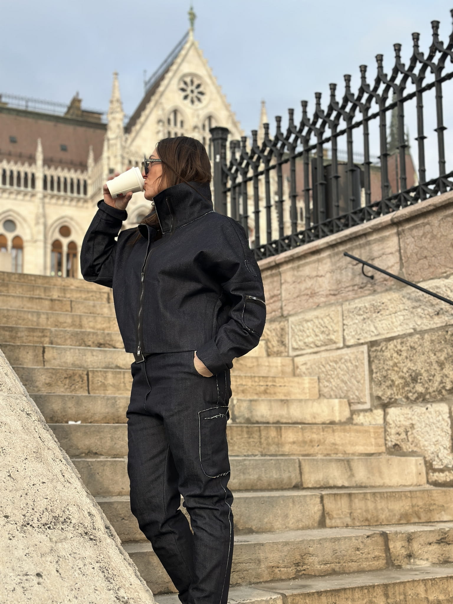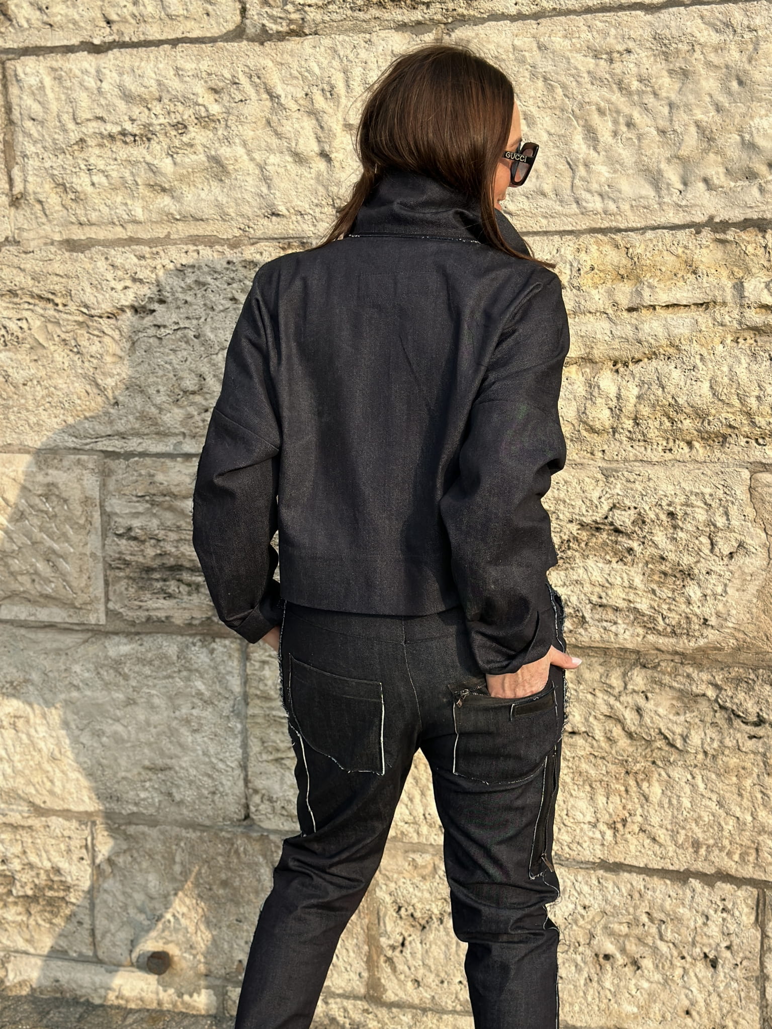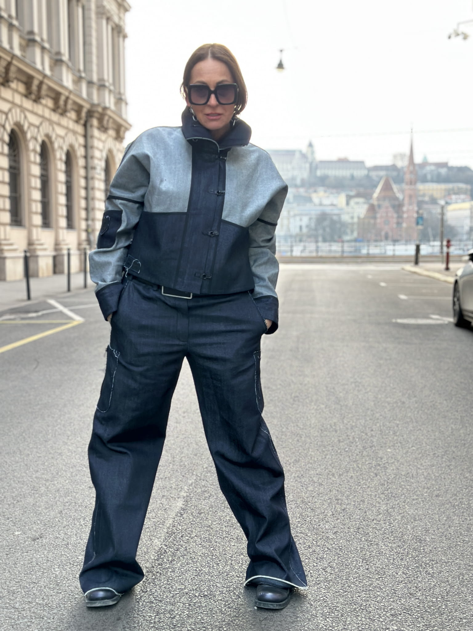 Jeansowa kurtka-pudełko dwustronna - ciemny granat wersja 1