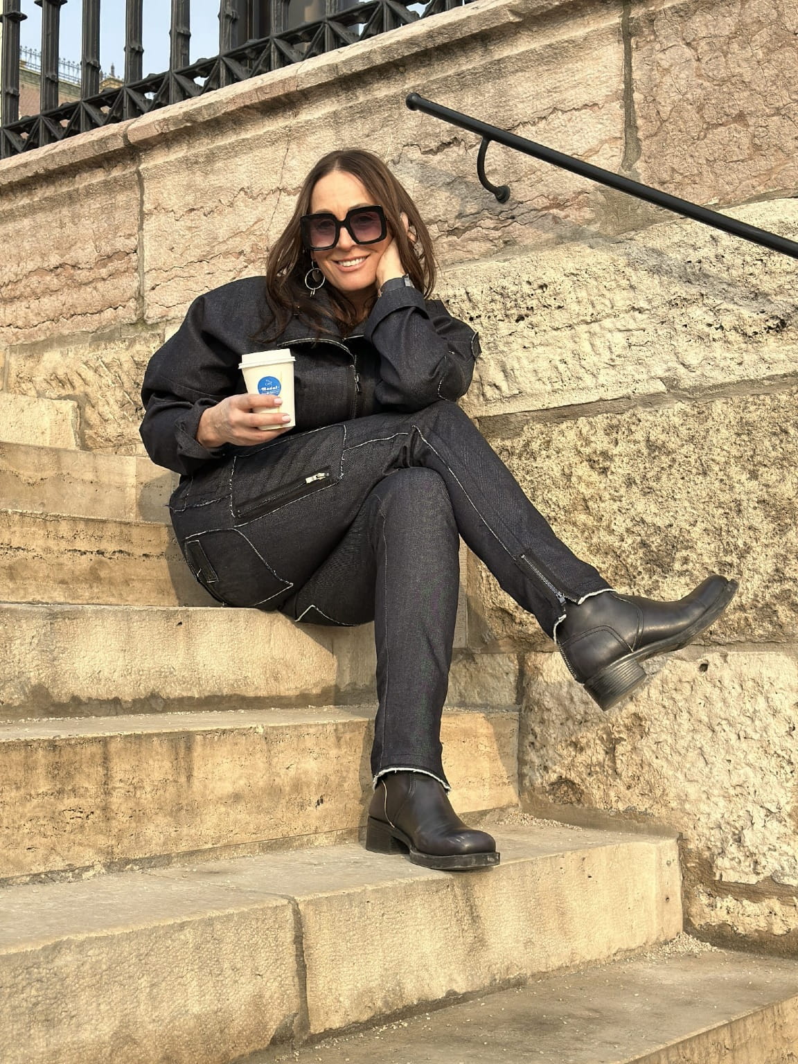 Modelka ma 175 cm wzrostu i nosi rozmiar M