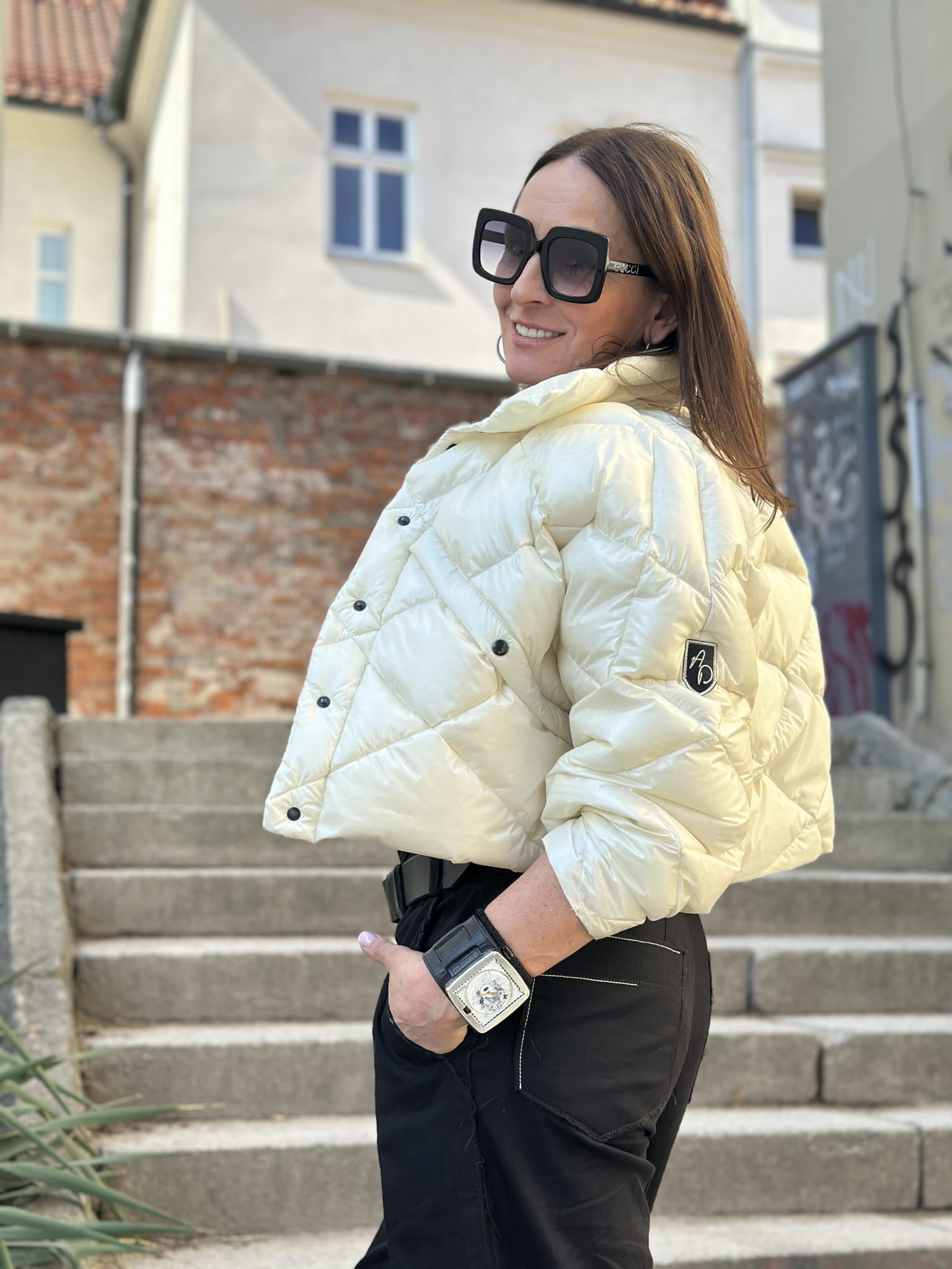 Krótka kurtka puchowa o pudełkowym kroju to moja propozycja na wiosnę i chłodniejsze letnie dni czy wieczory.