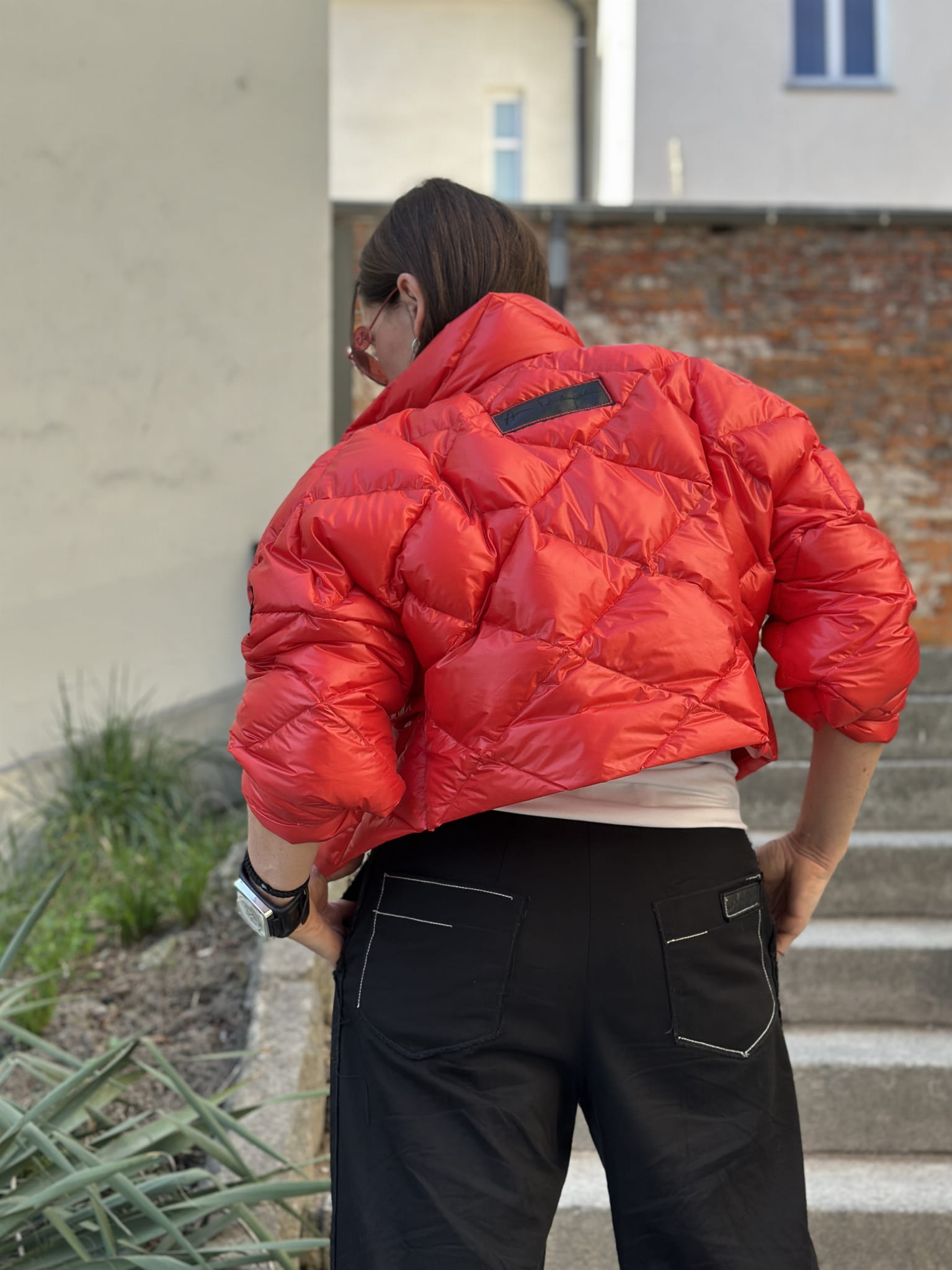 Krótka kurtka puchowa o pudełkowym kroju to moja propozycja na wiosnę i chłodniejsze letnie dni czy wieczory.
